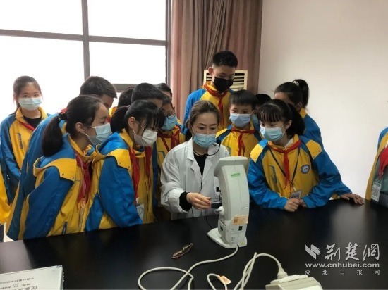在鄂州分院,計量人員深入淺出地為蓮花小學六年級的20名同學介紹了計量的歷史起源、計量的含義、計量與日常生活的緊密聯(lián)系等計量知識。為了讓同學們更加直觀地了解計量工作,計量人員帶領他們走進長度、溫度、天平等恒溫恒濕實驗室,和同學們一起測量紙張的厚度、頭發(fā)的重量和用紅外測溫儀測體溫。