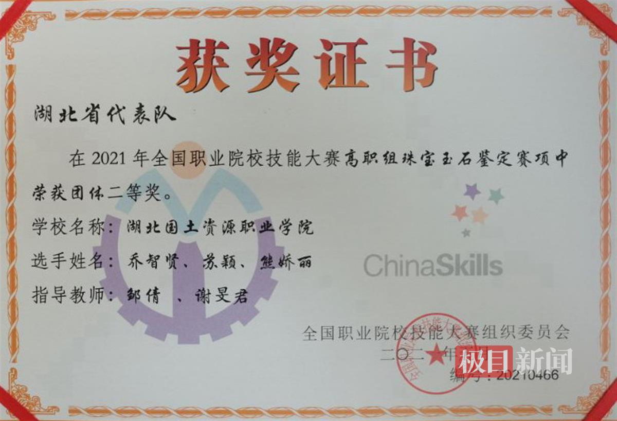 2020年,謝旻君擔(dān)任中華人民共和國(guó)第一屆技能大賽珠寶加工項(xiàng)目裁判員,學(xué)校陳馳同學(xué)代表湖北省參賽,賽前比較緊張,情緒上不是很穩(wěn)定。謝旻君看到這種情況后,輕聲細(xì)語(yǔ)地對(duì)他說(shuō):“人的一生中會(huì)經(jīng)歷很多次的歷練,每一次的歷練都是對(duì)自己學(xué)習(xí)成果的檢驗(yàn)。我們不看重名次,但我們要超越昨天的自己?!苯?jīng)過(guò)謝旻君與他的溝通,陳馳同學(xué)緩解了緊張情緒,對(duì)自己也充滿了信心,最終榮獲全國(guó)第4名的成績(jī)和“全國(guó)技術(shù)能手”稱號(hào)。