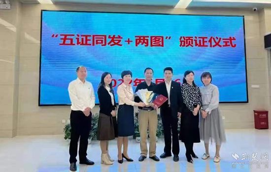 縣政務(wù)服務(wù)和大數(shù)據(jù)管理局為企業(yè)頒發(fā)“五證”。通訊員 供圖