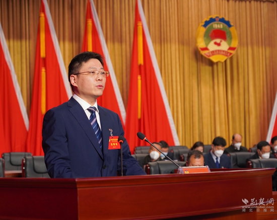 華容區(qū)政協(xié)副主席萬向東作《中國人民政治協(xié)商會議華容區(qū)第九屆委員會常務(wù)委員會