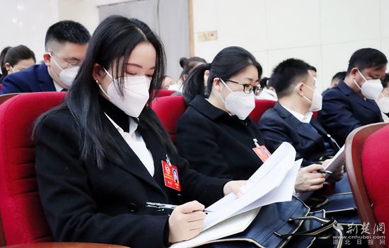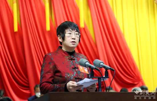 洪再林作《中國(guó)人民政治協(xié)商會(huì)議黃岡市第六屆委員會(huì)常務(wù)委員會(huì)工作報(bào)告》。記者胡小軍 攝
