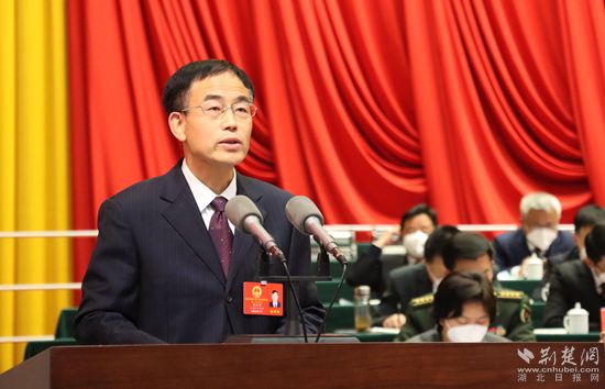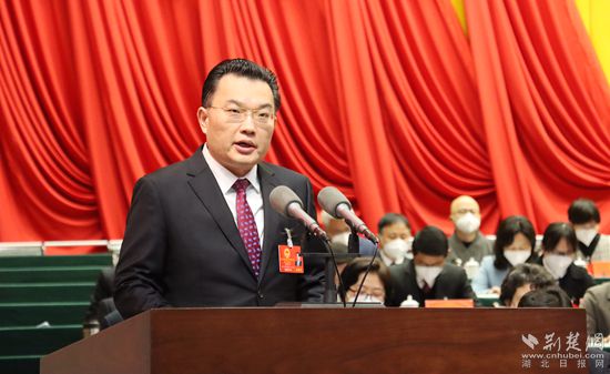 黃岡市人民檢察院黨組書記、檢察長萬強(qiáng)作報告。記者 胡小軍 攝