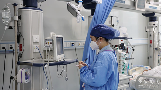 ICU護理人員記錄患者健康狀況。通訊員 供圖