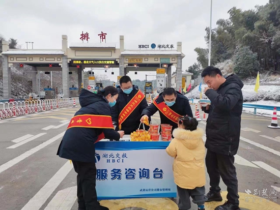 為助力旅客返鄉(xiāng)團(tuán)圓,湖北交投武黃運營公司杭瑞高速排市管理所青年志愿服務(wù)隊迅速行動,開展“聽得見的微笑”服務(wù),主動將免費的熱飲和食物送到司乘人員手中,讓收費站秒變服務(wù)站,讓司乘路堵心不堵。