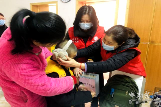 活動(dòng)現(xiàn)場(chǎng),他們與受助學(xué)生一一拉鉤結(jié)對(duì),將自己準(zhǔn)備好的御寒手套、護(hù)耳罩等贈(zèng)送給接受幫扶的學(xué)生,并將自己的電話號(hào)碼留給他們?!跋M阍谛碌囊荒曛锌鞓?lè)學(xué)習(xí)、健康成長(zhǎng),祝你新年愉快,記得保持聯(lián)系哦!”志愿者們的關(guān)愛(ài)和句句祝福,在受助學(xué)生心中播下了友誼與愛(ài)的種子。