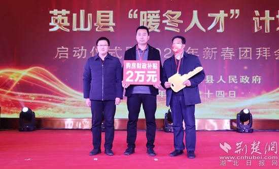 活動現(xiàn)場歡聲笑語,暖意融融。該縣“四大家”領導與40余名專家人才、企業(yè)家共敘友情、共議發(fā)展、共謀良策。啟動儀式上,該縣招商和投資促進中心負責同志作招商項目推介,人才購房系列優(yōu)惠政策(“黃金五條”)出爐,深圳市物業(yè)發(fā)展(集團)股份有限公司黨委書記、董事長劉聲向等8名專家人才代表被頒發(fā)英山縣“人才大使”聘書、贈送人才綠卡和新年禮包。