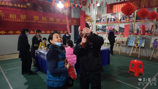 隨著教導員陳才和宣布猜燈謎活動開始,一場“最強大腦”猜燈謎爭奪賽在這里上演。自信滿滿的市民群眾們紛紛將謎面摘下,并將自己猜出的謎底與副所長姜萍核對,答對者立即獲得小禮品一份。在猜燈謎活動現(xiàn)場,穿插著的妙趣橫生的警民互動,將現(xiàn)場氣氛推向高潮,歡聲笑語不斷。