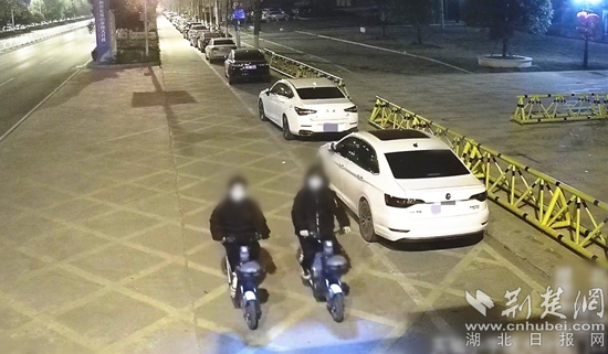 鳳凰派出所隨即聯(lián)合市局刑偵支隊(duì)依托“情指勤輿”一體化實(shí)戰(zhàn)化運(yùn)行機(jī)制,根據(jù)基站自動(dòng)報(bào)警時(shí)段,重點(diǎn)對(duì)其附近路段的公共視頻資料進(jìn)行研判,果然發(fā)現(xiàn)了疑點(diǎn):由于報(bào)警時(shí)間段為凌晨,周邊道路幾乎沒(méi)有人,所以兩名騎著共享自行車(chē)的戴口罩男子引起了民警的注意。