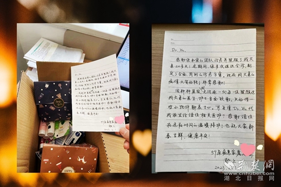 荊楚網(wǎng)(湖北日報網(wǎng))訊(通訊員 范琳琳 何幸運)“感謝諸位在這段時間的溫暖陪伴!”日前,黃岡市中心醫(yī)院泌尿外科收到一份誠意滿滿的禮物。紙盒里不僅裝滿糖果、潤唇膏、護手霜等暖心小禮物,還有一封珍貴的手寫感謝信。