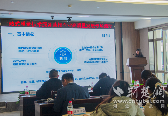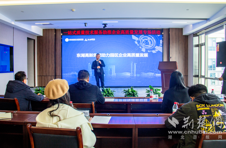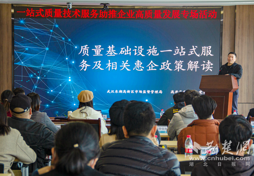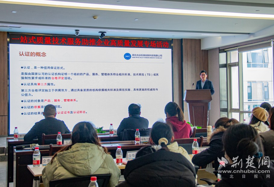 荊楚網(wǎng)(湖北日報網(wǎng))訊(記者劉陽 通訊員胡甜)2月28日,由武漢市東湖高新區(qū)市場監(jiān)管局指導,湖北省標準化與質(zhì)量研究院、武漢東湖高新集團股份有限公司聯(lián)合主辦,湖北光谷標準創(chuàng)新科技有限公司、武漢科訊智園技術服務有限公司等單位承辦的“一站式質(zhì)量技術服務,助推企業(yè)高質(zhì)量發(fā)展專場活動”在武漢軟件新城舉辦。來自東湖高新區(qū)的40余家企業(yè)的50名代表參加了此次活動。
