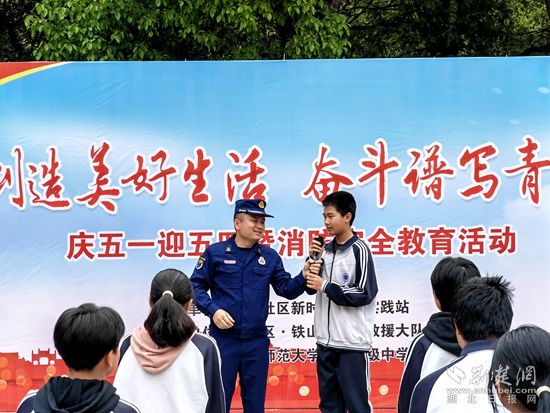 在消防小知識(shí)有獎(jiǎng)競(jìng)答環(huán)節(jié),學(xué)生們踴躍回答問題,紛紛展示學(xué)到的消防知識(shí),現(xiàn)場(chǎng)氣氛一片火熱,為了增強(qiáng)互動(dòng)效果,宣傳員利用消防宣傳車播放了生動(dòng)有趣的消防安全知識(shí)短片,并講解了滅火器、逃生面罩等消防器材及產(chǎn)品的使用方法和注意事項(xiàng),吸引了學(xué)生們觀看和學(xué)習(xí)。