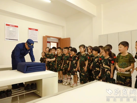 “這個被子像豆腐塊兒。”消防員的宿舍干凈整潔,看到疊放得有棱有角的被褥,和擺放整齊的書籍、物品,小朋友們不由得,一邊鼓掌一邊驚嘆。消防員邊講解,邊展示疊被子的過程,讓孩子們親眼見證,“豆腐塊兒”是如何誕生的。孩子們好奇地睜大雙眼,很快一床散落的被子,完成了大變身,現(xiàn)場師生拍手叫好。