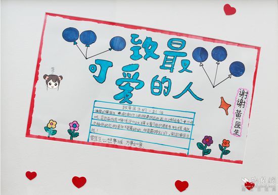 “這幅畫(huà)送給黃醫(yī)生?!毙∶饕?yàn)橹夤苎捉邮芰艘恢艿淖≡褐委煟趦嚎撇》績(jī)?nèi)用顏料、紙張和畫(huà)筆,畫(huà)了自己和兒科主任黃佳林主任的合照,準(zhǔn)備在出院時(shí)送給醫(yī)生。