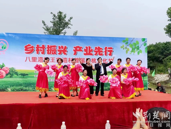 此次活動由八里灣鎮(zhèn)政府主辦,紅安縣文化館、八里灣鎮(zhèn)王家灣村、八里灣鎮(zhèn)文化站、八里灣鎮(zhèn)農(nóng)業(yè)服務(wù)中心聯(lián)合承辦,伴隨著大氣優(yōu)美的開場歌舞《春風(fēng)十里》,桃醉果園廣場上人頭攢動,熱鬧非凡,更有表演唱《辣嫂子》、京劇《智斗》等節(jié)目將演出推向高潮,形式多樣的文藝節(jié)目輪番上演,現(xiàn)場觀眾掌聲雷鳴。