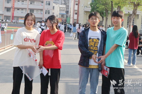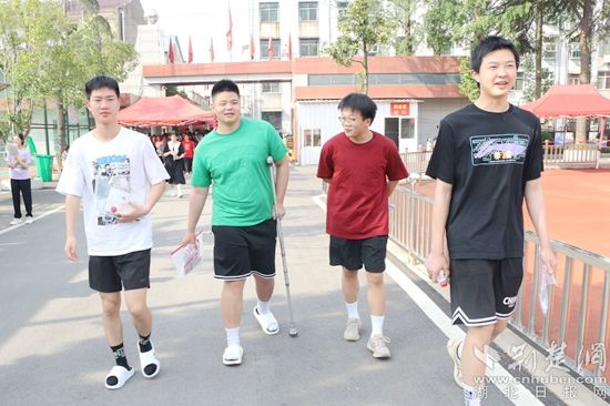 他們當中有的考生身穿紅色衣服,預(yù)??荚嚧蠼荩辉谶M考場前,有的考生圍在一起,擺出愛心的手勢,露出自信的笑容,高呼“戰(zhàn)勝高考,我能,我一定能”的口號響徹云霄;有的考生雖然在考前腿部或頭部受傷,但他們沒有顯示畏懼的神態(tài),反而展現(xiàn)了更堅強的毅力與一往無前的勇氣,面帶笑容,堅定地邁入考場……一幕幕從容的畫面詮釋著勇毅前行,一張張自信的笑臉展示著超越自我。