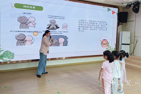 活動(dòng)中,杜航用一些發(fā)生在身邊鮮活、真實(shí)的典型事例,通俗易懂、深入淺出地講解了《未成年人保護(hù)法》中“家庭保護(hù)”“學(xué)校保護(hù)”“社會保護(hù)”和“司法保護(hù)”的相關(guān)內(nèi)容。用幼兒容易理解的小視頻和故事進(jìn)行防性侵、防拐騙、防溺水等方面的安全教育,機(jī)智的問答互動(dòng),讓孩子們在歡聲笑語中學(xué)到了知識,懂得了如何保護(hù)自己。