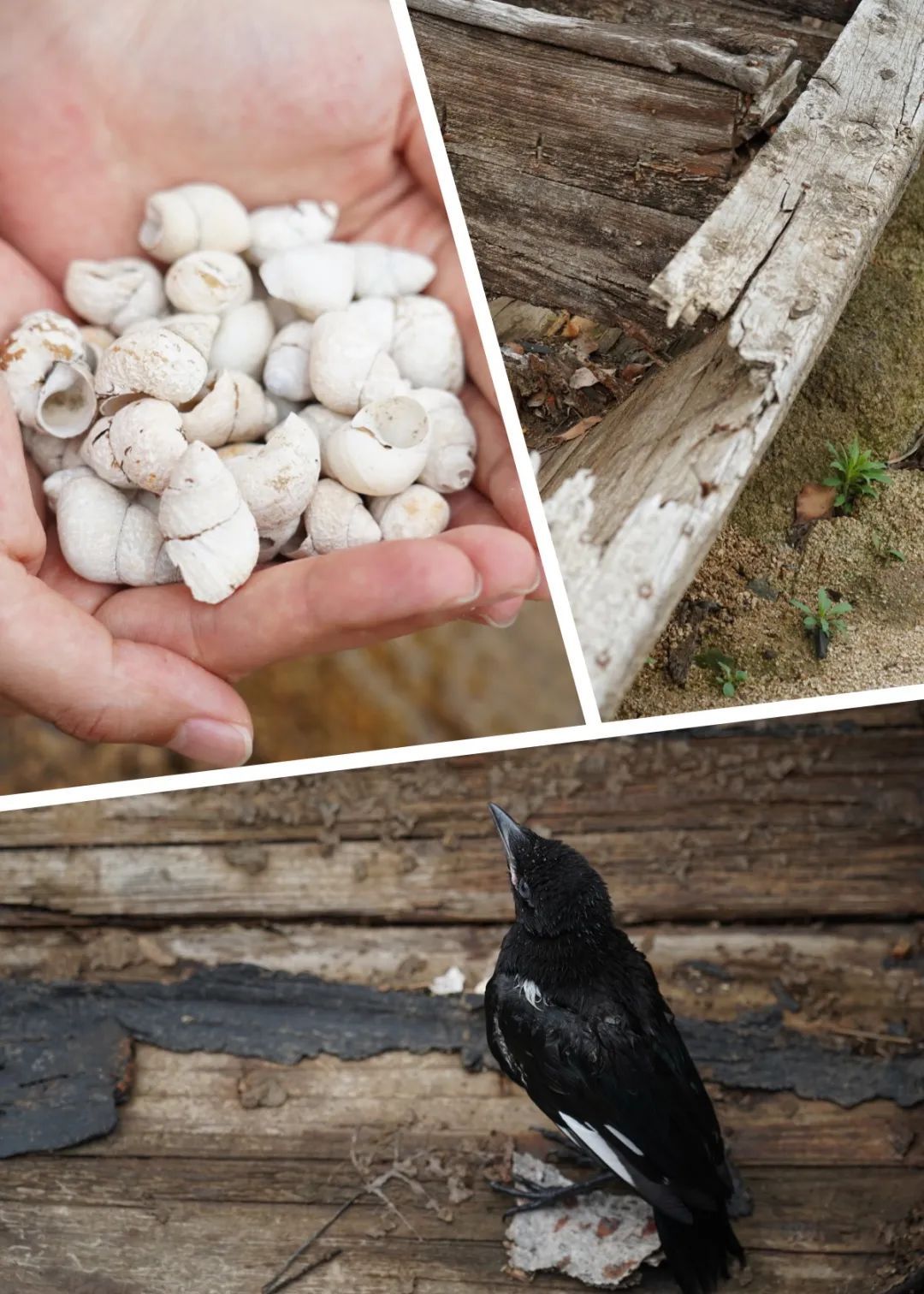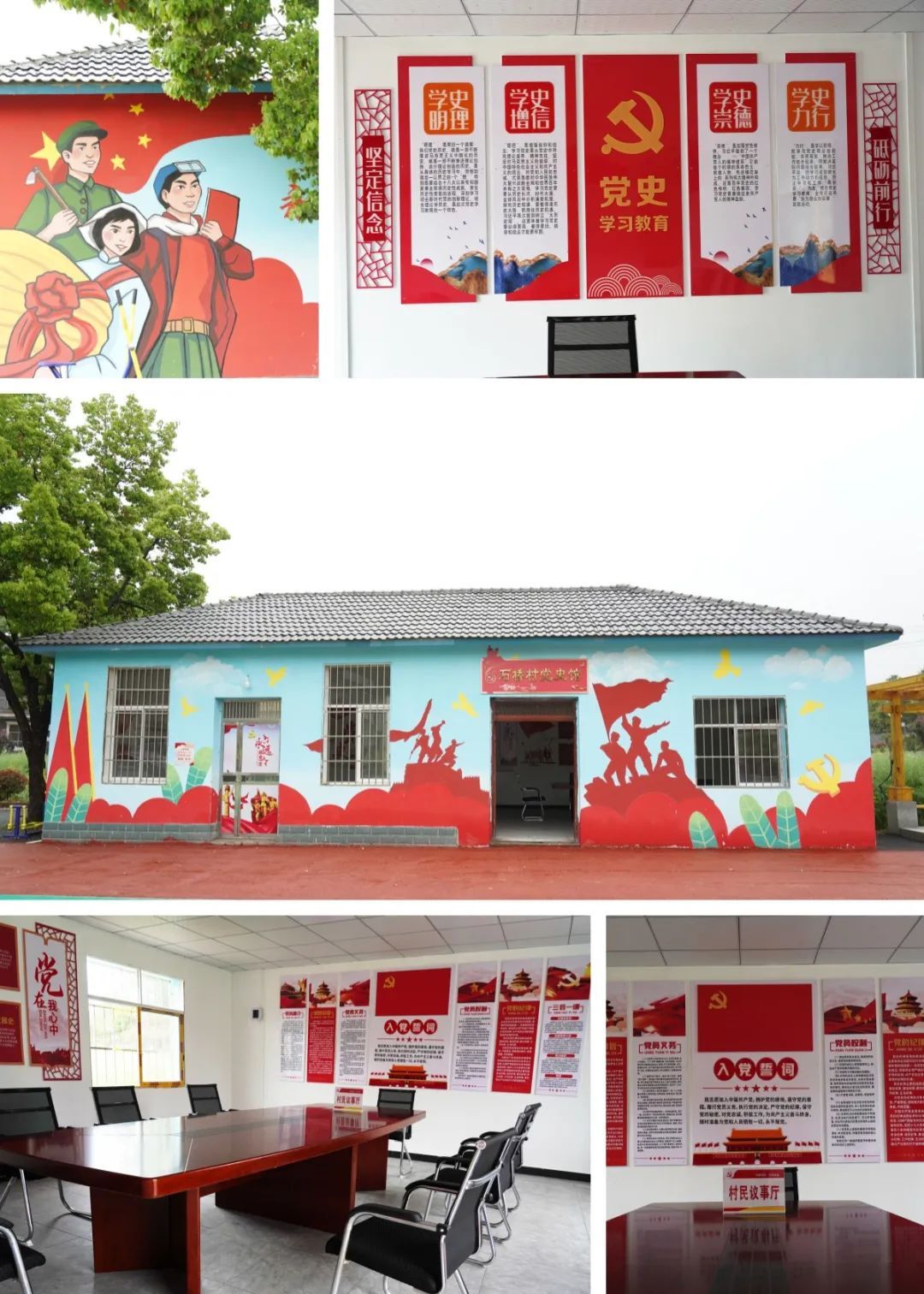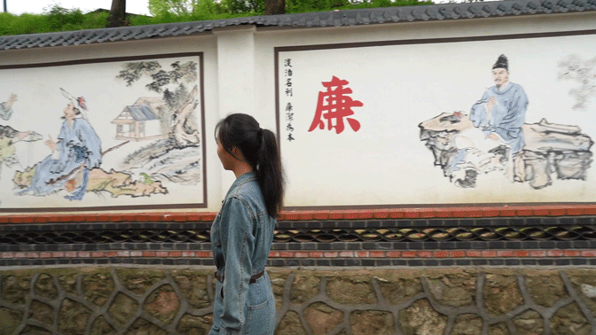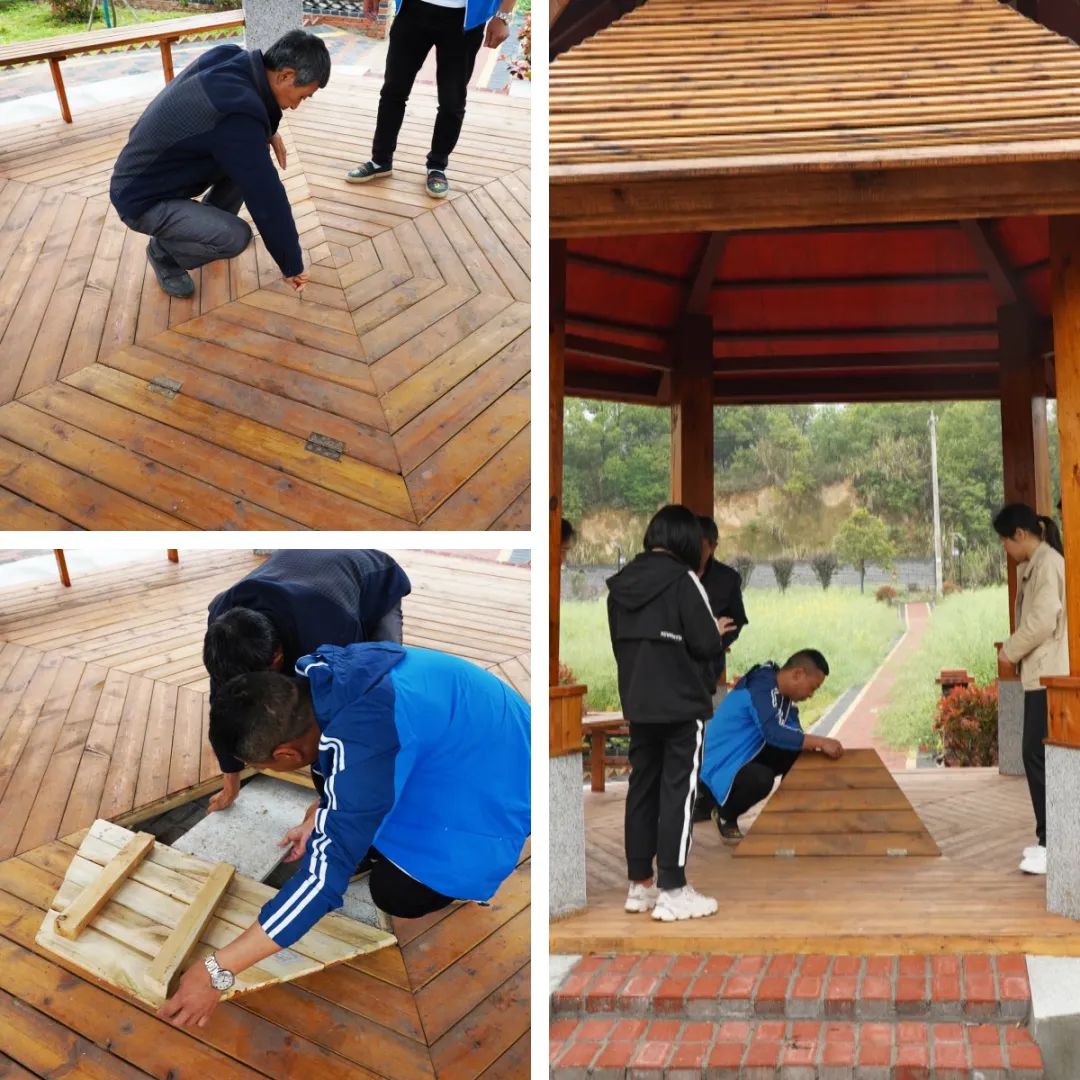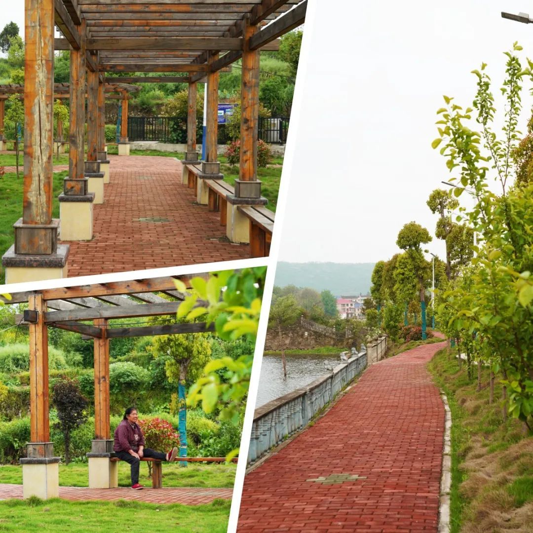 將農(nóng)具鑲嵌在墻上村民休憩的長廊與涼亭