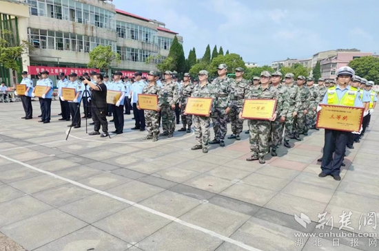 根據(jù)評(píng)分細(xì)則,由5名退役軍人組成的評(píng)委團(tuán),從著裝、紀(jì)律及隊(duì)形等方面依次對(duì)各隊(duì)進(jìn)行打分。湘卉物業(yè)、鑫杰物業(yè)、輔警代表隊(duì)獲三等獎(jiǎng),廟鵝嶺股經(jīng)社和南門(mén)股經(jīng)社代表隊(duì)獲二等獎(jiǎng),五里墩股經(jīng)社代表隊(duì)榮獲一等獎(jiǎng)。弘強(qiáng)物業(yè)代表隊(duì)獲得組織獎(jiǎng),執(zhí)法中心代表隊(duì)獲特別貢獻(xiàn)獎(jiǎng)。