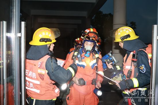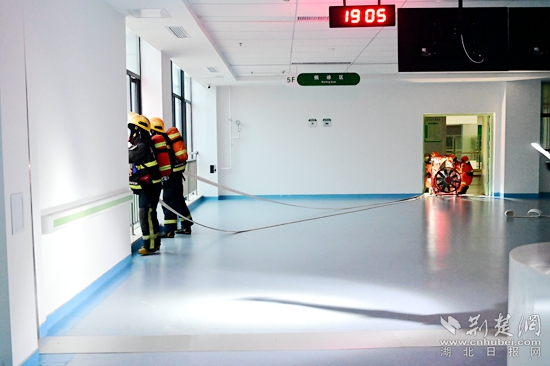 荊楚網(wǎng)(湖北日報網(wǎng))訊(通訊員 寧靜)“緊急通知!緊急通知!醫(yī)院門診樓5樓發(fā)生火災(zāi),‘火勢’正在蔓延,現(xiàn)啟動火災(zāi)緊急疏散!請盡快撤離!”伴隨著陣陣報警聲響起,數(shù)輛消防車聚集……7月8日晚,一場高層建筑滅火救援夜間實(shí)戰(zhàn)演練在黃石市中心醫(yī)院黃金山院區(qū)拉開帷幕。