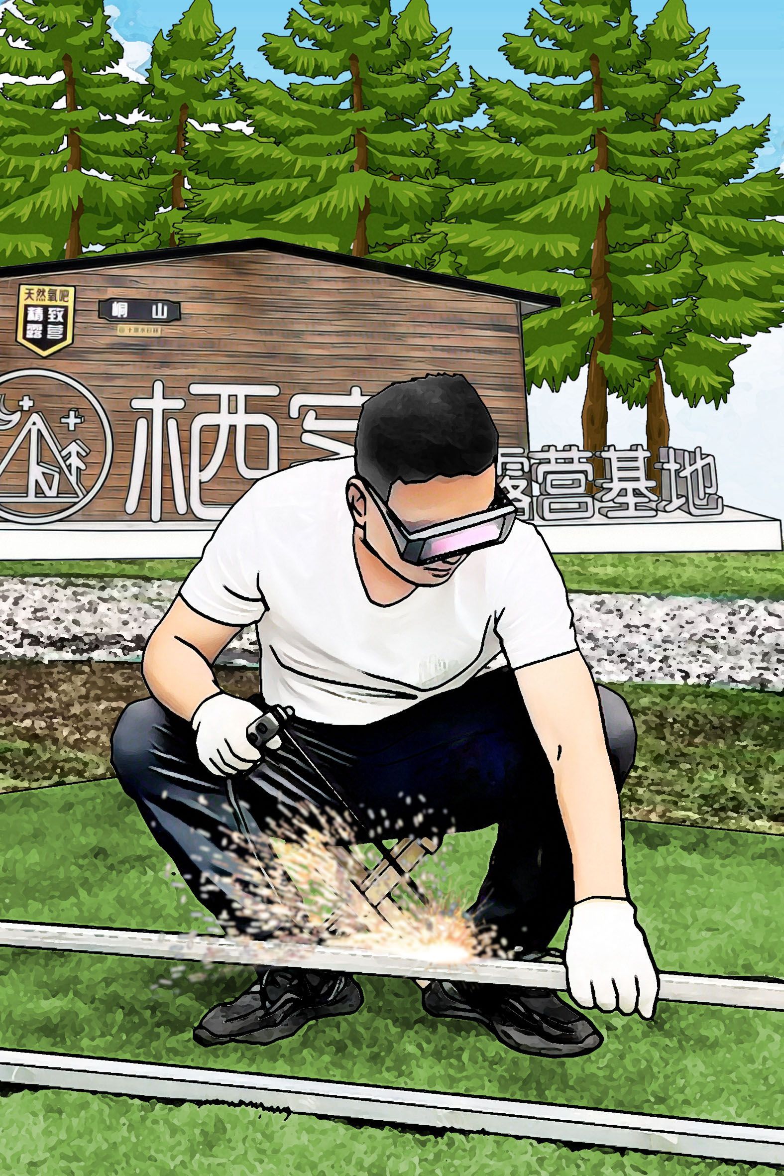 2022年8月,陳川正式與峒山村簽約,投資300萬元,在十里水杉林建設棲客露營基地。在基地建設過程中,陳川既是老板也是員工,設計圖紙,搬運器材,焊接構件……幾乎什么活兒都干??吹竭@個后生如此上進,熱心的村民們紛紛前往工地幫忙。