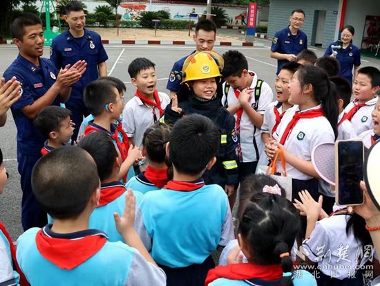 荊楚網(wǎng)(湖北日?qǐng)?bào)網(wǎng))訊(通訊員 張承妹)25日,黃石市消防救援支隊(duì)下陸大隊(duì)舉辦營(yíng)區(qū)“開放日”活動(dòng),來自白馬山小學(xué)和有色小學(xué)的70余名小朋友在老師陪同下走進(jìn)營(yíng)區(qū),暢享了一次特殊的暑期“消防之旅”。