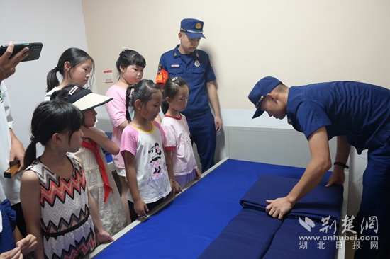 孩子們還走進(jìn)了消防員的宿舍,看到疊得如同豆腐塊般的被子,大家紛紛豎起了大拇指,都被消防員高度的自律性所震撼。消防員為青少年講解了“豆腐塊”被子的疊法,大家學(xué)習(xí)熱情高漲,紛紛模仿、動(dòng)手操作?!敖裉斓膮⒂^讓我感受到了消防叔叔們的勇敢和擔(dān)當(dāng)。我以后也要成為一名光榮的消防員,守護(hù)大家的安全和平安?!币晃粎⒓踊顒?dòng)的小朋友說道。