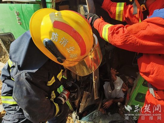 經(jīng)過40分鐘緊張救援,成功將被困司機(jī)救出,并轉(zhuǎn)移給現(xiàn)場醫(yī)務(wù)人員。