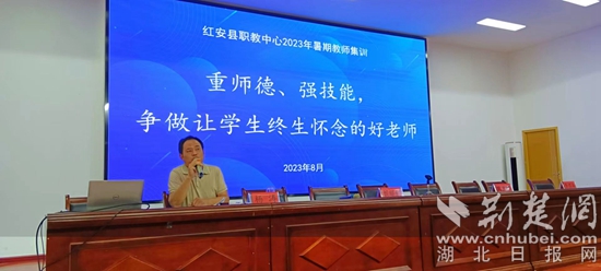 紅安縣職教中心2023年暑期集訓(xùn)以“重師德,強師能,爭做讓學(xué)生終生懷念的好老師”為主題,培訓(xùn)為期3天,包含師德師風(fēng)宣講、法規(guī)學(xué)習(xí)、中職班主任能力大賽賽項解析及備賽技巧等多個學(xué)習(xí)內(nèi)容,給全體教職工充電賦能,為學(xué)校高質(zhì)量發(fā)展增添新動能。