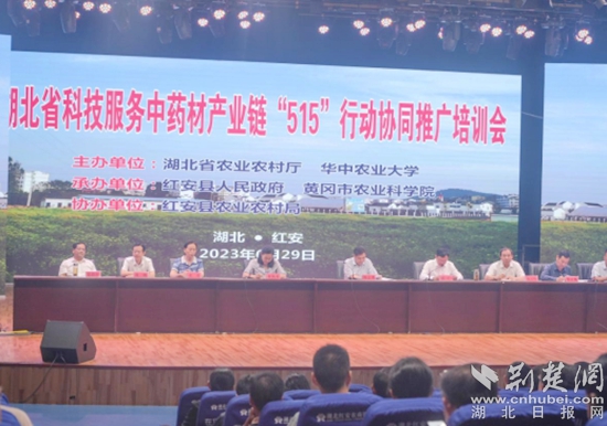 今年?6月28日,湖北省科技服務(wù)中藥材產(chǎn)業(yè)鏈“515”行動(dòng)協(xié)同推廣培訓(xùn)會(huì)在紅安縣潤(rùn)康農(nóng)業(yè)發(fā)展有限公司召開(kāi)。