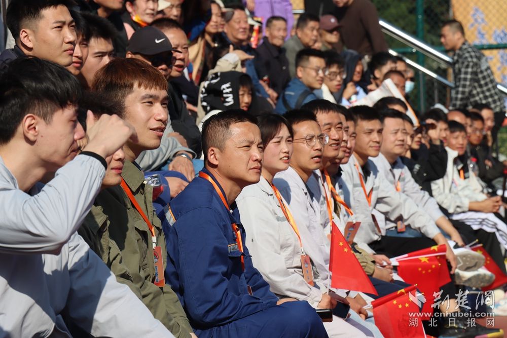 職工關(guān)注賽場情況。阮瓊 攝