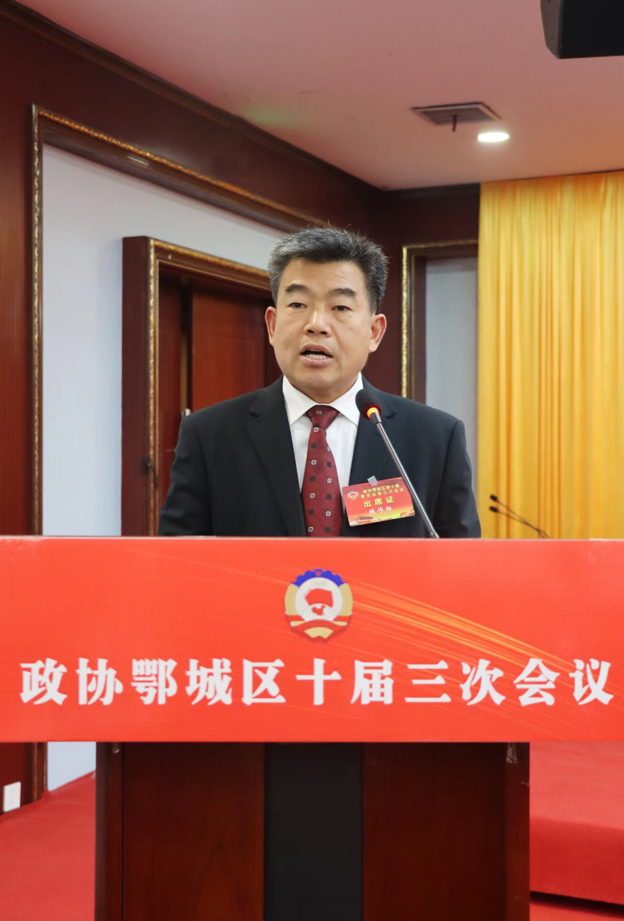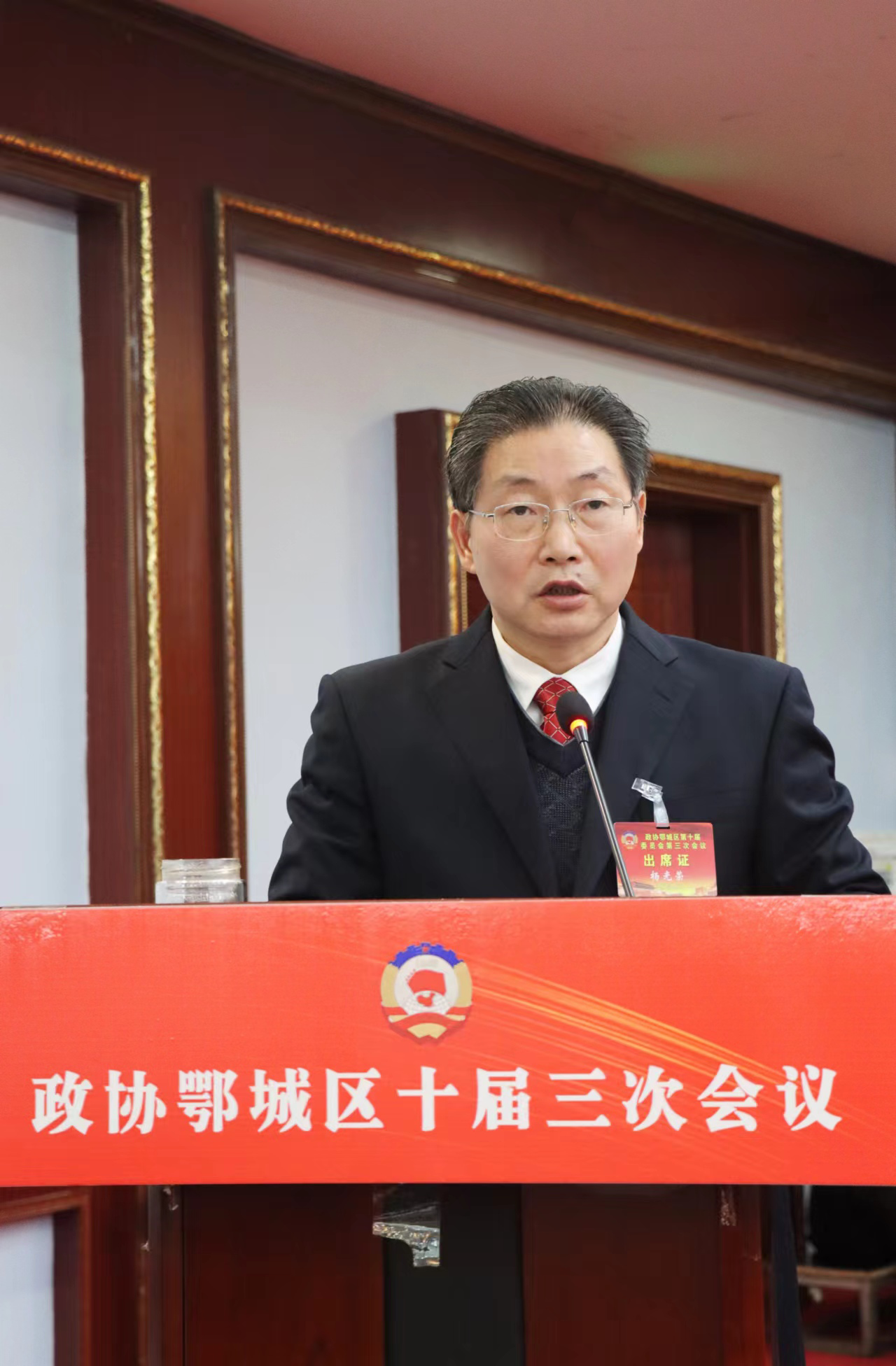 鄂城區(qū)政協(xié)主席楊光榮代表政協(xié)鄂城區(qū)第十屆委員會(huì)常務(wù)委員會(huì)作工作報(bào)告。胡小軍 攝