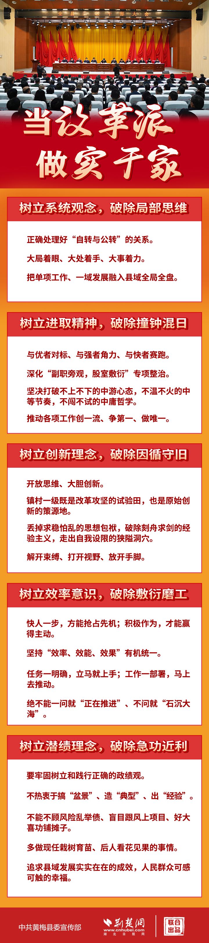 2月20日,黃梅縣召開三級干部大會。縣委書記劉欲曉提出,黃梅要前進,根本在干部。要引領(lǐng)全縣干部解放思想、甩開膀子、邁開步子、干出樣子,在堅持先立后破中保持站位前列姿態(tài)。