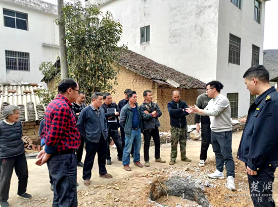“你這新房墻修在這兒,屋檐都占到路了,別說外人不同意了,我第一個(gè)不允許”,村民鄒治德的舊宅因垮塌拆除后,申請(qǐng)?jiān)贩?,但因?yàn)榕f址地基緊挨村道,3米的寬路行至此處只余2.6米,其親叔鄒生今聽聞此事,說出主持公道的話。審批小組聞?dòng)嵑蠹皶r(shí)趕到現(xiàn)場,進(jìn)行溝通并展開政策宣傳。