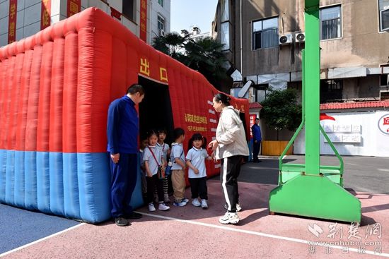 在操場(chǎng),消防員指導(dǎo)小朋友試穿“滅火戰(zhàn)斗服”、佩戴消防頭盔、體驗(yàn)火場(chǎng)逃生帳篷,詳細(xì)講解火災(zāi)事故的危險(xiǎn)性以及如何正確撥打火警電話(huà)、火場(chǎng)逃生自救方法等消防安全知識(shí),讓小朋友們對(duì)火災(zāi)有了更深刻地認(rèn)識(shí)。