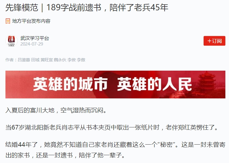 連日來(lái),《189字戰(zhàn)前遺書,陪伴了老兵45年》的故事也在不斷升溫,獲得省內(nèi)外多家媒體密集關(guān)注。
