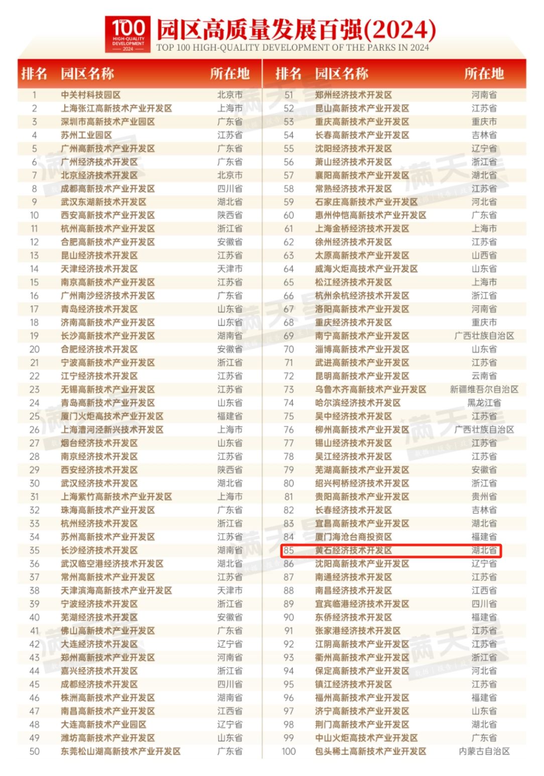 荊楚網(wǎng)(湖北日報網(wǎng))訊(記者呂鑒蕾 通訊員董浩)8月14日,賽迪顧問發(fā)布《2024年中國園區(qū)經(jīng)濟(jì)高質(zhì)量發(fā)展研究報告》。黃石經(jīng)濟(jì)技術(shù)開發(fā)區(qū)在賽迪百強(qiáng)園區(qū)中位列85位,較上一年上升7位。