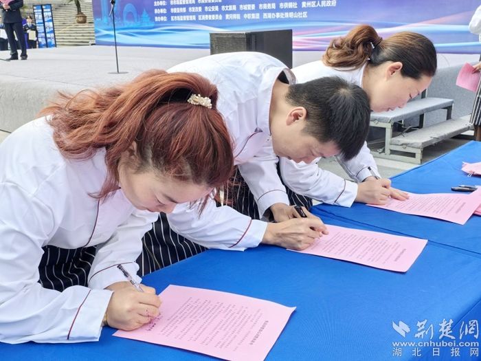活動現(xiàn)場,黃岡市消費(fèi)者委員會、黃岡市市場監(jiān)管局向廣大消費(fèi)者、經(jīng)營者、行業(yè)協(xié)會和政府職能部門發(fā)布了放心消費(fèi)倡議,公布了參與學(xué)生新街放心消費(fèi)承諾活動的經(jīng)營主體名單。經(jīng)營者代表現(xiàn)場作出放心消費(fèi)公開承諾,并被授牌學(xué)生新街首批“放心消費(fèi)承諾單位”。