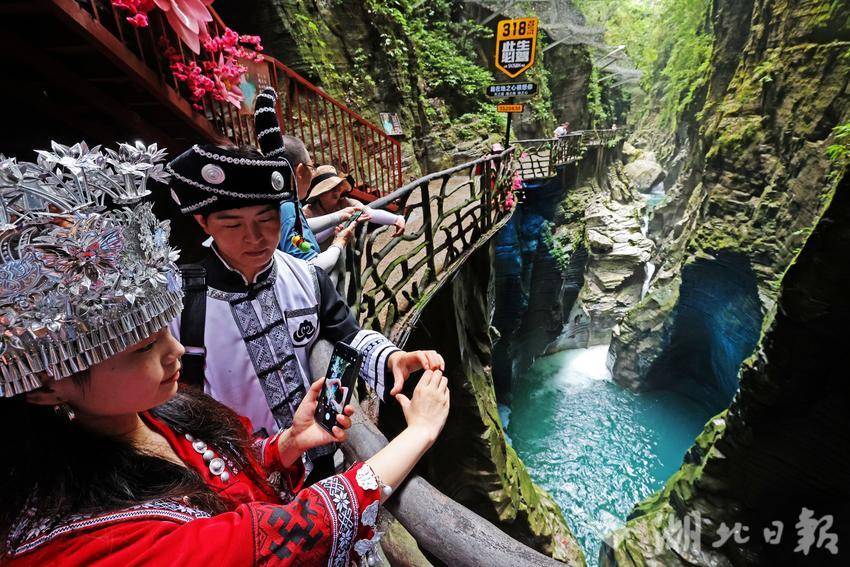 深入谷底,抵達(dá)被《中國國家地理》認(rèn)證推薦的最佳取景位!該點位以天光一線、碧水環(huán)繞的天然畫框景觀著稱,為游客提供標(biāo)準(zhǔn)化取景平臺,可完整呈現(xiàn)峽谷地質(zhì)奇觀與生態(tài)之美。