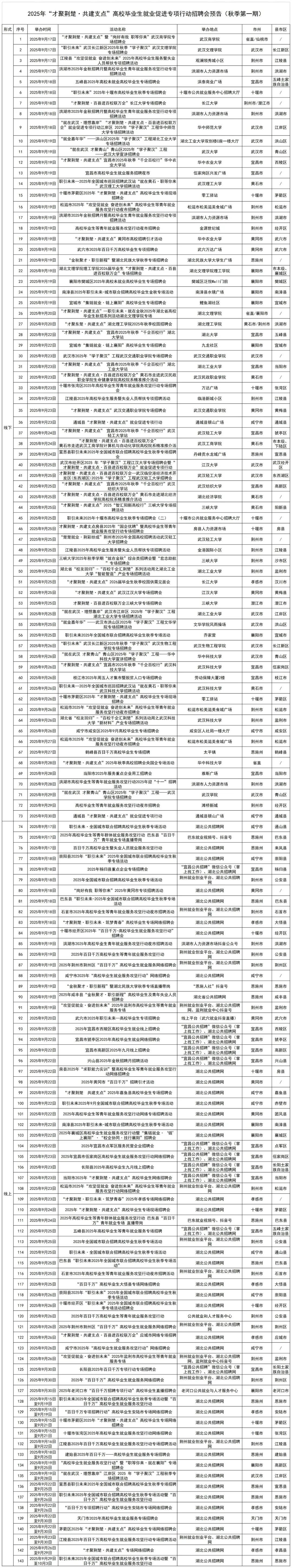 2025年“才聚荊楚·共建支點(diǎn)”高校畢業(yè)生就業(yè)促進(jìn)專(zhuān)項(xiàng)行動(dòng)招聘會(huì)預(yù)告(秋季第一期)