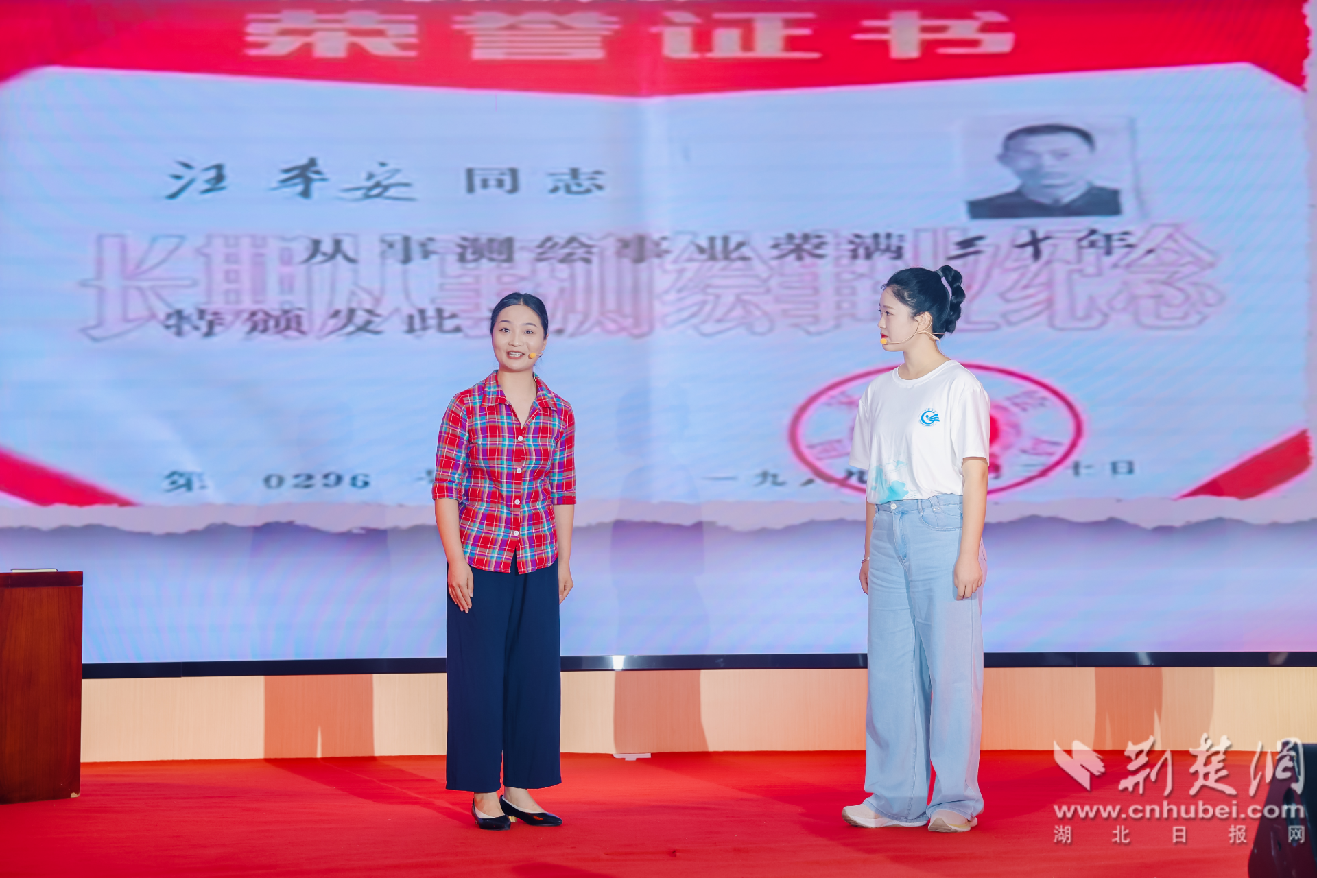 音樂(lè)黨課以毛澤東詩(shī)詞名句為脈絡(luò),在《江河萬(wàn)古流》的旋律中拉開(kāi)序幕,分為三個(gè)篇章展開(kāi)。在第一篇章《江湖安瀾篇·高峽出平湖》中,天門(mén)市水文局講述了祖孫三代74年扎根基層“把脈江湖”的故事;宜昌市水文局通過(guò)情景劇展現(xiàn)了從傳統(tǒng)測(cè)量到無(wú)人機(jī)三維測(cè)繪、遠(yuǎn)程雷達(dá)波在線監(jiān)測(cè)的水文技術(shù)變遷。展現(xiàn)了百年水文發(fā)展巨變,水利建設(shè)成果豐碩。