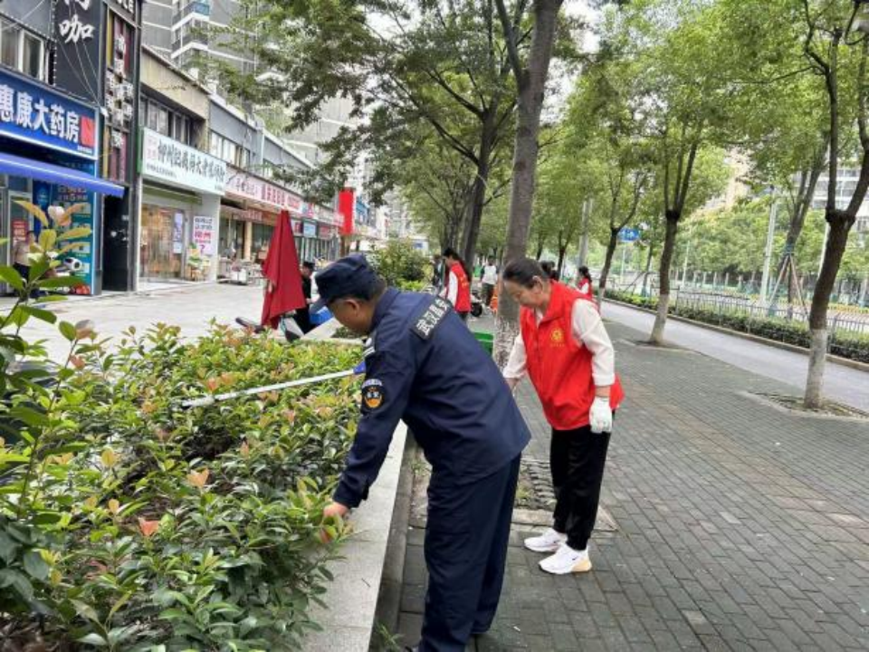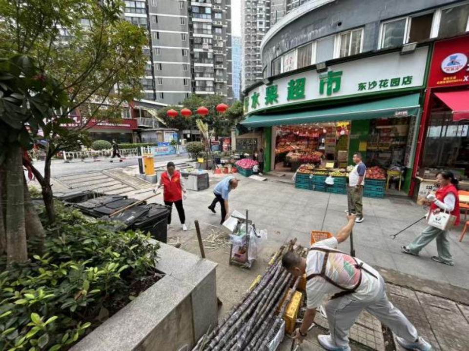 上午九點,東沙商業(yè)街區(qū)一派熱火朝天的勞動景象。行動中,各方分工明確、協(xié)同發(fā)力,形成“多元共治”的生動畫面。街道公管辦與綜合執(zhí)法中心統(tǒng)籌指揮,重點清運街角巷尾積存雜物和大件垃圾;社區(qū)工作人員和志愿者深入綠化帶,細致?lián)焓盁燁^、紙屑,全面擦洗公告欄、垃圾箱等“城市家具”,有效解決容器漫溢、綠化帶藏污等問題。多家商戶也紛紛主動加入,拿起掃帚、水桶,清洗門前路面、擦拭櫥窗、規(guī)范物品擺放,從“各掃門前雪”轉(zhuǎn)變?yōu)椤肮沧o大家園”。