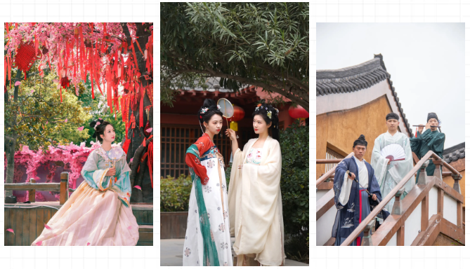 首先,清明上河園是宋式園區(qū),和古裝超級(jí)適配!所以,可以著漢服入園,另外,園區(qū)設(shè)有三處免費(fèi)換裝點(diǎn),分別位于迎賓門廣場(chǎng)、宋裝館、尚服局,都可以免費(fèi)換裝,團(tuán)扇、折扇也可以備一把哦~