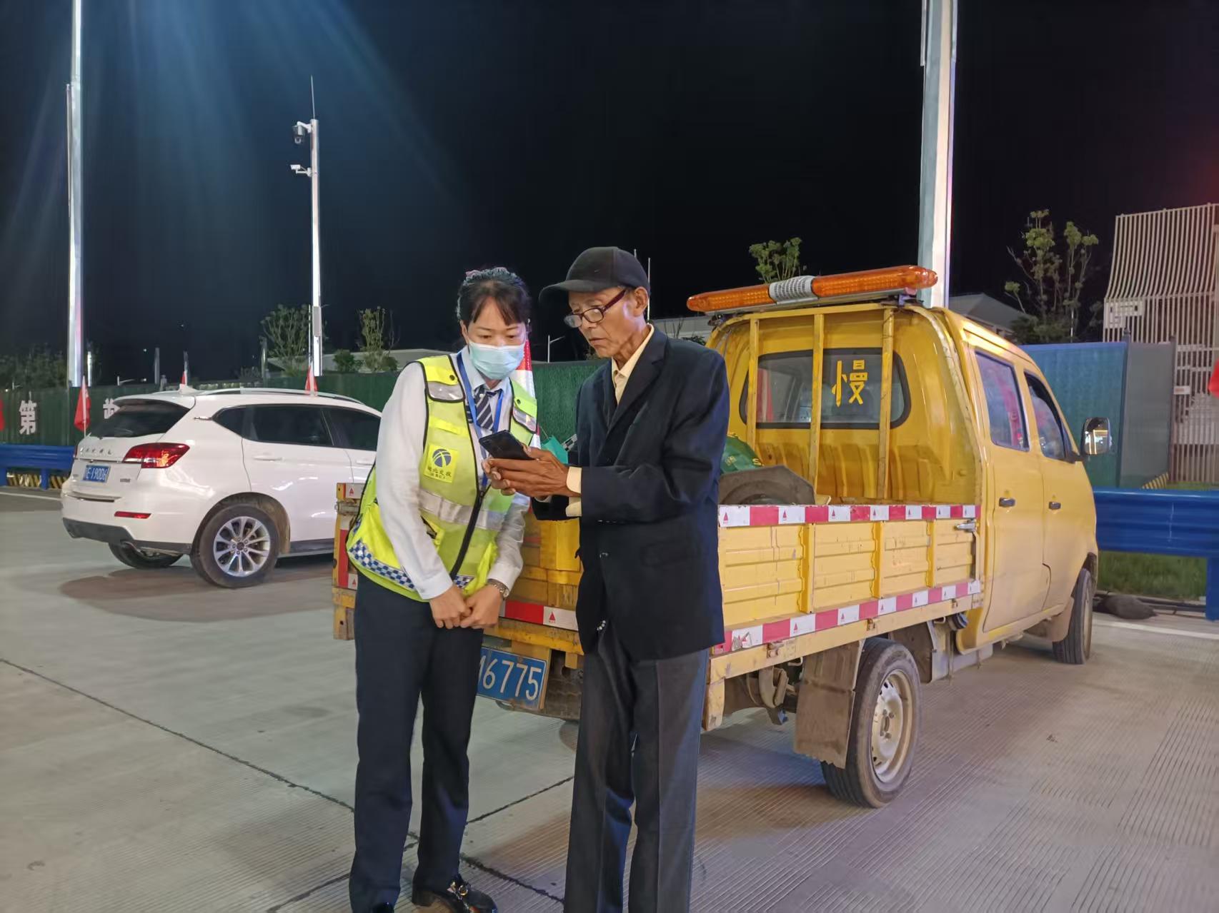 當(dāng)天凌晨2時許,一位老人茫然地站在孝感收費站廣場上,神情低落,顯得不知所措。正在外場巡邏的收費班長王燕玲發(fā)現(xiàn)了這一情況,便主動上前詢問。
