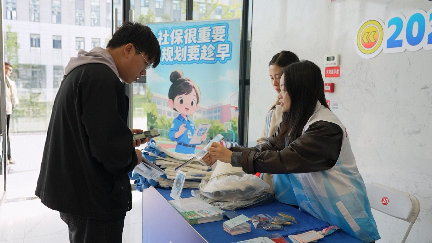 省社保中心工作人員為大學(xué)生們提供社保規(guī)劃服務(wù)
