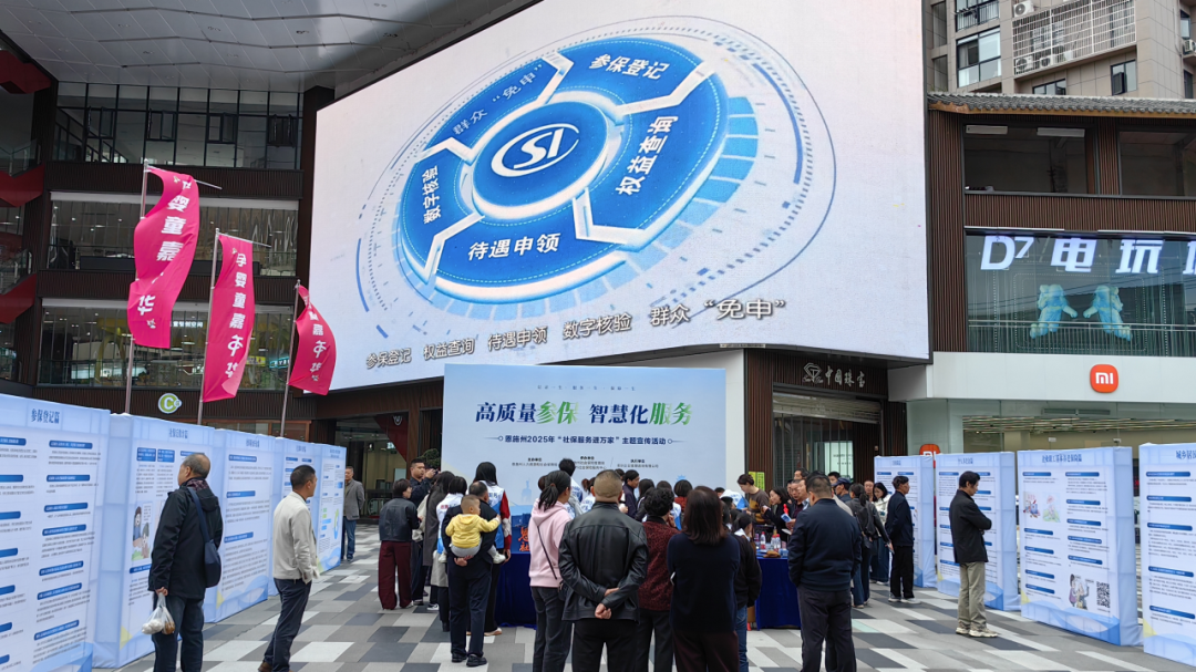 黃岡市“社保服務進萬家”活動現(xiàn)場,群眾在社保政策宣傳展板前駐足觀看。