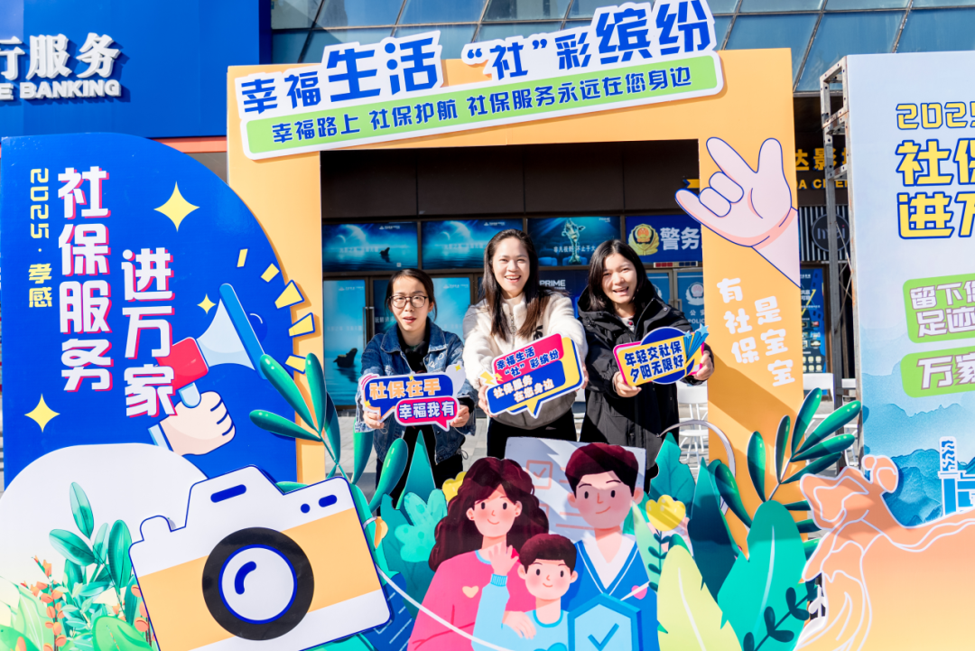 孝感市“社保服務進萬家”活動啟動儀式現(xiàn)場,年輕人在打卡點留下幸福笑臉。
