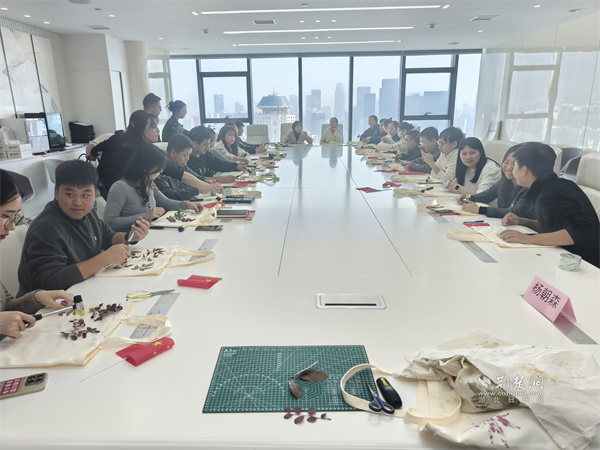 宣講結(jié)束后,現(xiàn)場還組織了“植物拓印”非遺體驗(yàn)環(huán)節(jié)。在武漢啟晨社會(huì)組織的指導(dǎo)下,黨員們以純天然植物為材料,制作了出了各具特色的環(huán)保袋。大家紛紛表示,在動(dòng)手創(chuàng)造美的過程中,切身感受到了綠色低碳生活的魅力,增強(qiáng)了踐行環(huán)保理念的自覺。