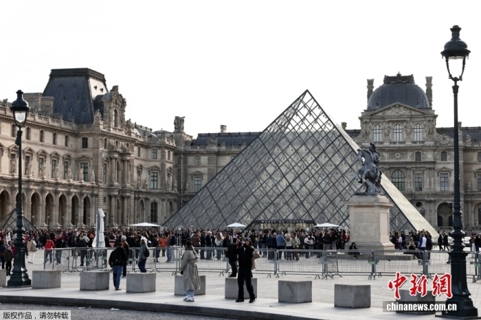 當(dāng)?shù)貢r(shí)間10月22日,在經(jīng)歷了搶劫事件三天后,法國(guó)盧浮宮重新開(kāi)門(mén),供游客參觀。圖為游客在盧浮宮外排隊(duì)。