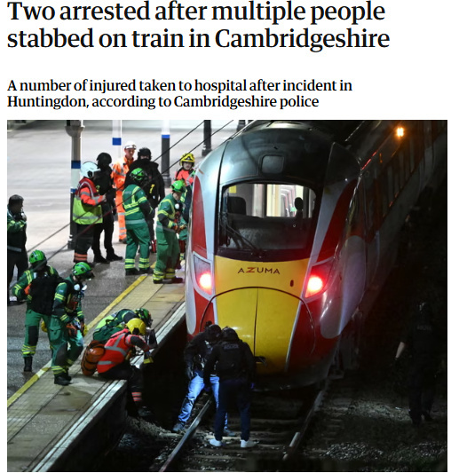 中新網(wǎng)11月2日電 據(jù)英國《衛(wèi)報(bào)》報(bào)道,當(dāng)?shù)貢r(shí)間11月1日,英國一前往劍橋郡亨廷登的火車上發(fā)生持刀行兇事件,已有兩人被警方逮捕。
