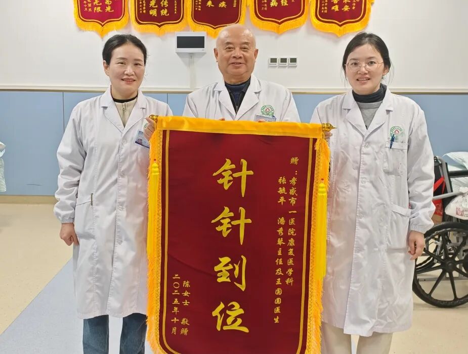 荊楚網(wǎng)(湖北日報網(wǎng))訊(通訊員 潘秀琴)10月28日,孝感市第一人民醫(yī)院康復(fù)醫(yī)學(xué)科的診室里暖意融融,患者陳女士將兩面分別繡有“針針到位”“仁心仁德好醫(yī)生 全心全意為患者”的鮮紅錦旗鄭重送到醫(yī)護人員手中,感謝該科團隊用精湛醫(yī)術(shù)與暖心照護助其重返健康生活。